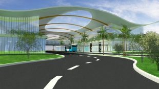 Adotou-se como partido arquitetônico a integração com a região em que está implantado. Desta forma, foram adotadas estruturas com linhas assimétricas que remetem ao relevo. A escolha dos materiais de acabamento busca reduzir os impactos no meio ambiente (materiais recicláveis) e tornar o projeto o mais transparente possível.