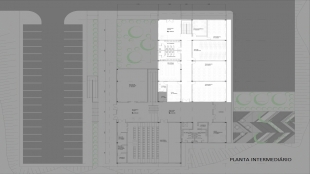 Um segundo acesso ao prédio se encontra no nível intermediário. Sendo que este tem a função de recepcionar as pessoas que irão ministrar ou receber os treinamentos teóricos. Está dividido em três salas de aula e os treinamentos que necessitem de computadores, numa sala exclusiva para informática. Conta com uma sala de apoio para o corpo docente, além de sanitários, copa com acesso à cozinha e uma biblioteca. Esta área é dividida do salão para eventos por uma porta dupla, por motivos operacionais, sendo que ambas as áreas possuem infraestrutura suficiente para funcionarem de forma independente.