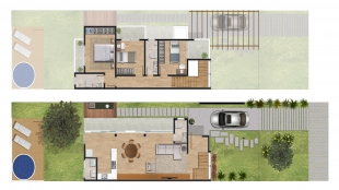 Foram previstos para a construção duas tipologias diferente de casa, uma com 136 m² e outra com 127m².